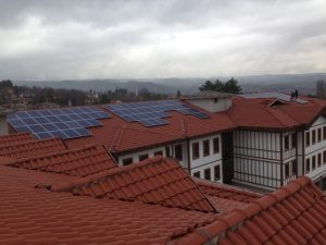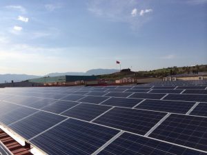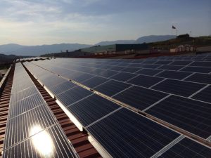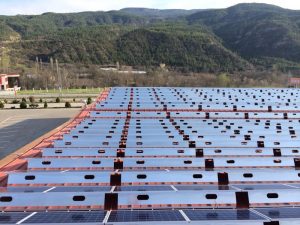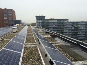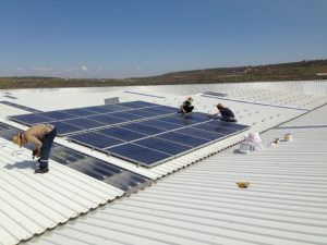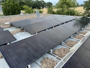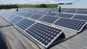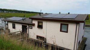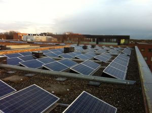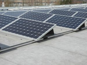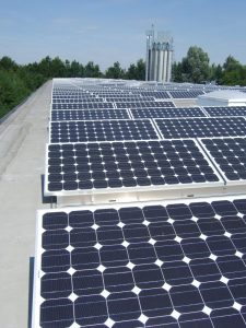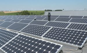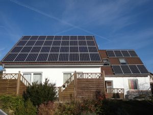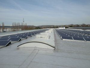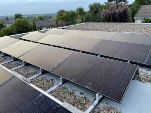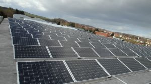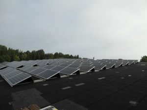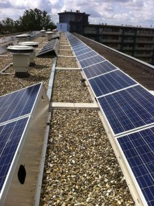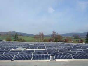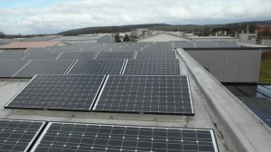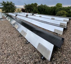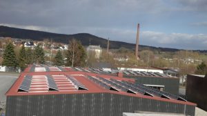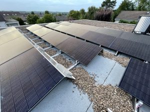Flachdach Photovoltaikanlage mit Aufständerung ProfitLight Eco und Batteriespeicher PV Anlage mit 11,5kWp und BYD Speicher Aufständerung ProfitLight Eco mit Blechkaschierung und Ballastierung Wechselrichter und Batteriespeicher mit Überspannungsschutz im Messkonzept 4 Westfalen Weser Referenzanlagen